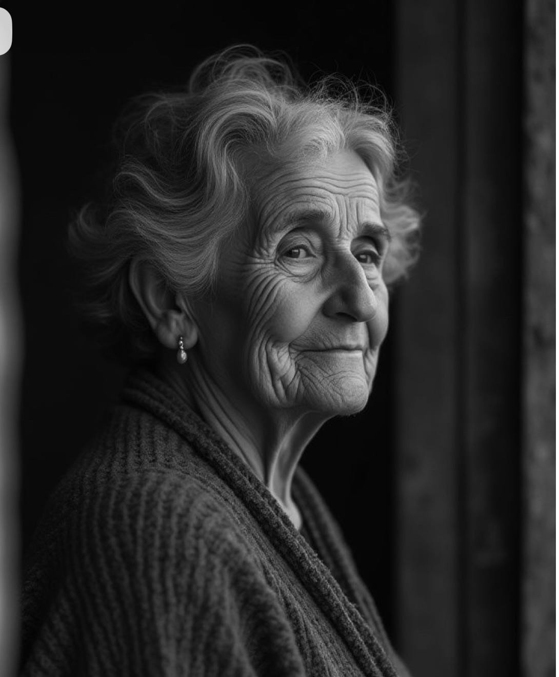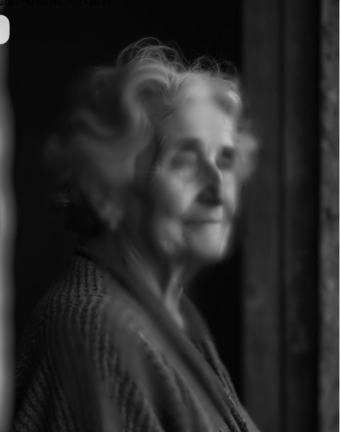 Notice that no wrinkles are visible but we can still tell that this is a person of 80 or 90 years old. (Or she would be, if she were human).